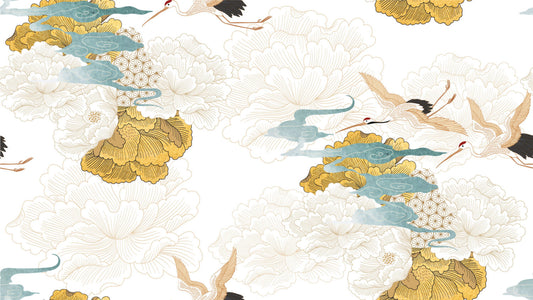 Japon Turna Kuşları Gold Çiçekler Duvar Kağıdı