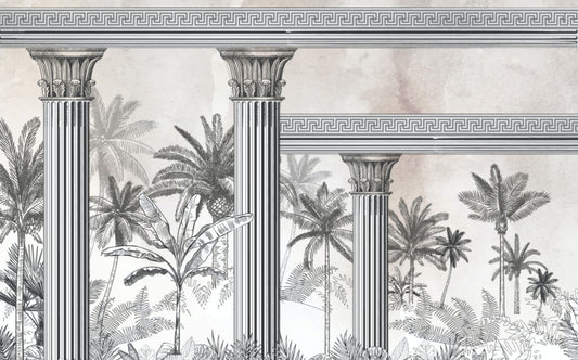 Kale İçindeki Tropikal Desenli 3D Duvar Kağıdı