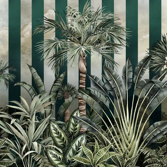 Kalın Çizgili Tropikal Desenli 3D Duvar Kağıdı