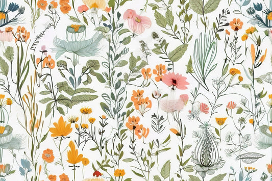 Kır Çiçekleri ve Yapraklar Duvar Kağıdı