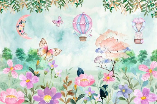 Kelebek ve Uçan Balondaki Fil Duvar Kağıdı
