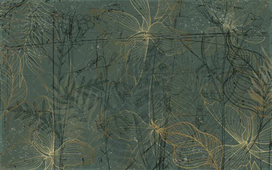 Koyu Yeşil Botanik Çiçekli 3D Duvar Kağıdı