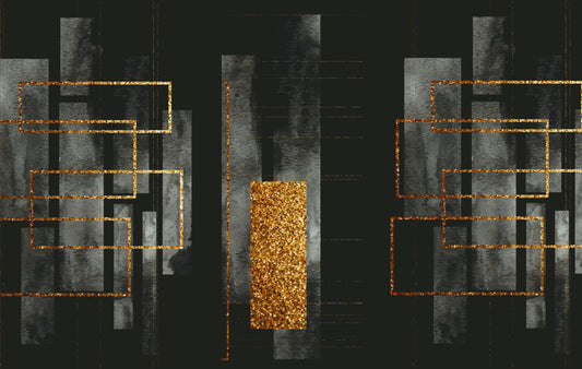 Koyu Yeşil Altın Detaylı Geometrik Duvar Kağıdı | Duvar Kağıdı Marketi