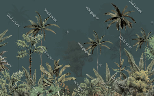 Koyu Tonlarda Sisli Tropikal Ormanı Duvar Kağıdı