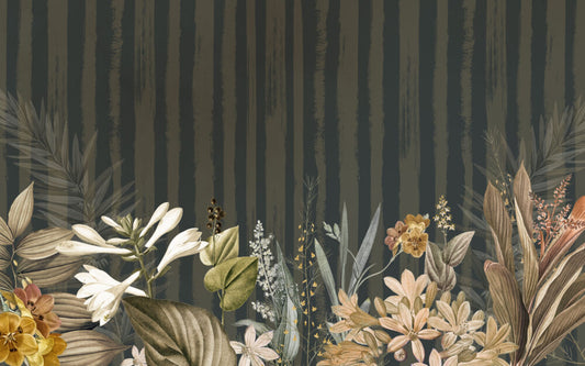 Koyu Tonlarda Çicekler 3D Duvar Kağıdı