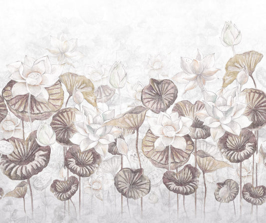 Krem Renkli Çiçek Desenli 3D Duvar Kağıdı