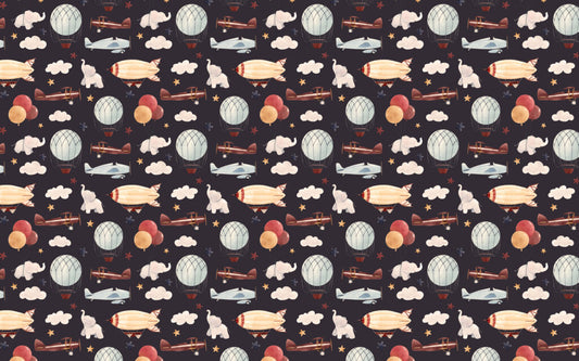Koyu Zemin'li Uçak, Balon ve Bulut Desenli 3D Duvar Kağıdı