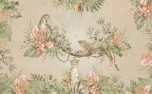 Krem Zeminli Tropikal Ormandaki Leopar Duvar Kağıdı
