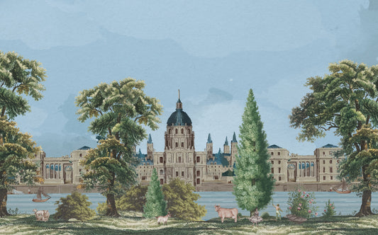 Ağaç Ve Eski Saray Görünümlü 3D Duvar Kağıdı | Duvar Kağıdı Marketi