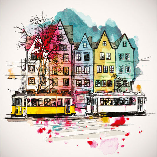 Renkli Eskitilmiş Şehir Ve Tramvay Duvar Kağıdı