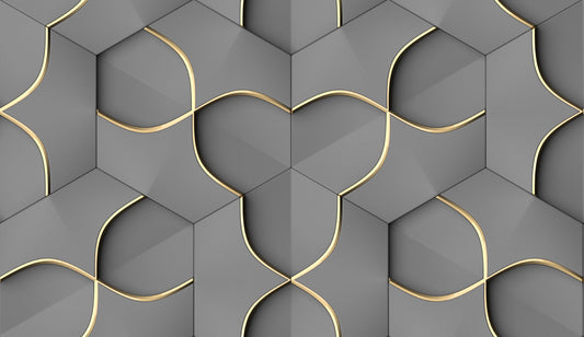 Altın Detaylı Gri Geometrik 3D Duvar Kağıdı