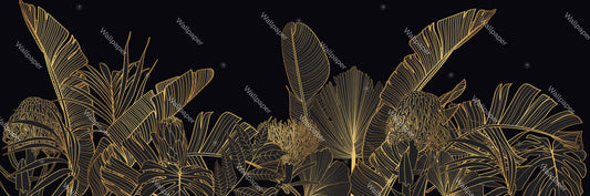 Altın Çizgisel Tropikal Orman Siyah Zemin Duvar Kağıdı