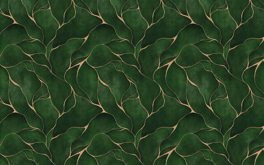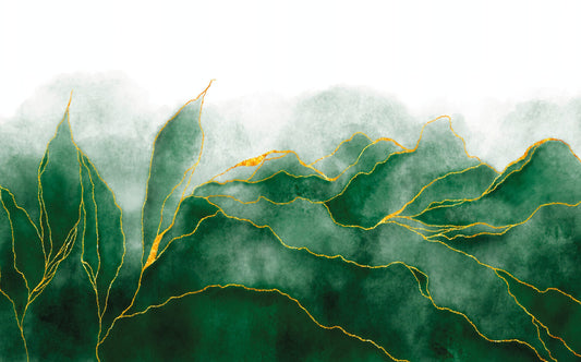 Altın Çizgili Yeşil Soyut Yapraklar Duvar Kağıdı