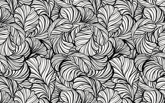 Siyah Beyaz Yapraklı Desen Duvar Kağıdı