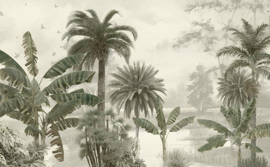 Yeşil Renkli Tropikal Ağaçlı 3D Duvar Kağıdı