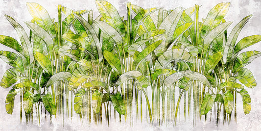 Yeşil Muz Ağaçlı Tropikal Desenli 3D Duvar Kağıdı