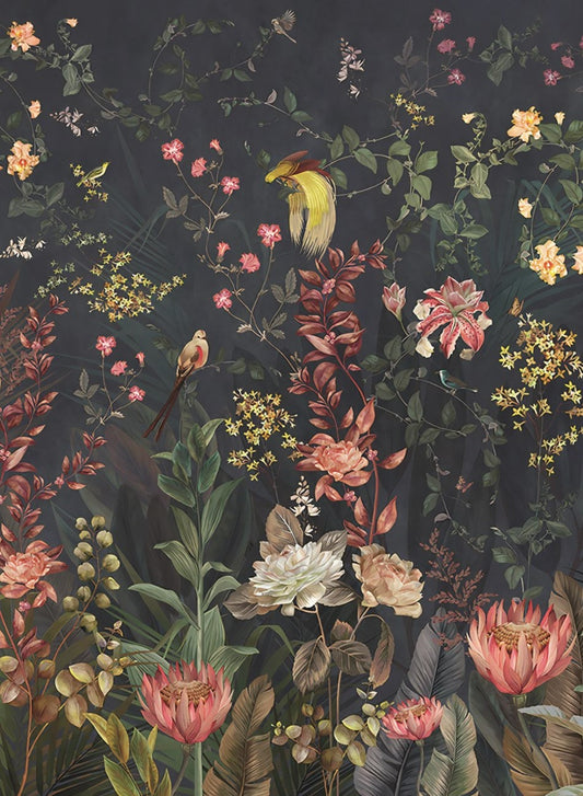 Kuş ve Çiçek Desenli 3D Duvar Kağıdı