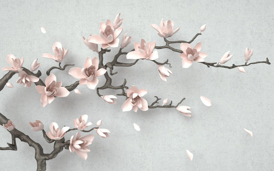 Uçan Kuşlar ve Çiçekli Ağaç Dalı Desenli 3D Duvar Kağıdı