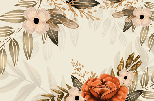 Suluboya Efekti Yaprak ve Çiçekler Duvar Kağıdı