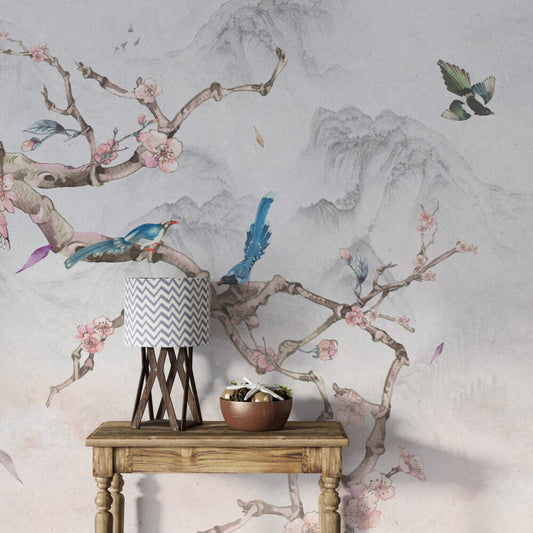 Kuş ve Dağ Manzarası Duvar Kağıdı
