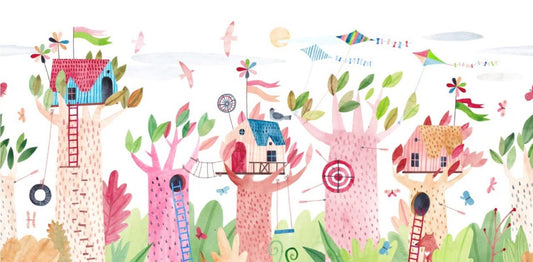 Renkli Ağaç Evler Duvar Kağıdı | Duvar Kağıdı Marketi