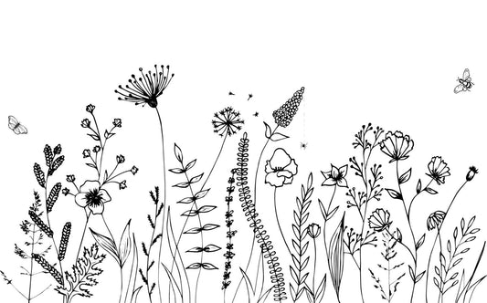 Siyah Beyaz Çiçekler 3D Duvar Kağıdı