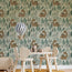 Tropikal Çiçekli Dinozor Desenli Duvar Kağıdı Poster