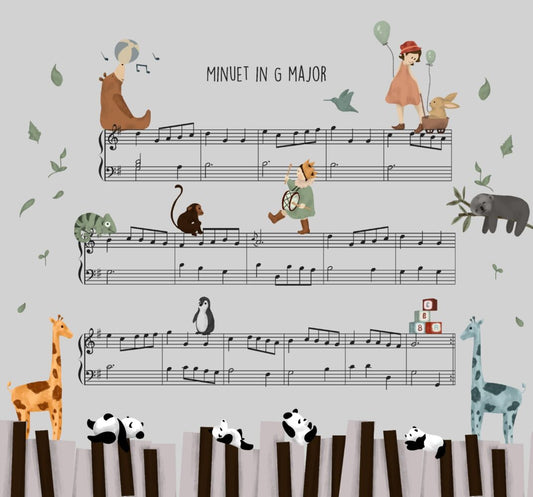 Çocuk Odası Müzik Notalarının Üzerindeki Hayvanlar 3D Duvar Kağıdı