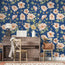 Çiçekler Mavi Zeminli Duvar Kağıdı Poster