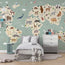 Çocuk Dünya Haritası Turkuaz Hayvanlı Duvar Kağıdı Poster