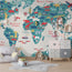 Hayvan Desenli Çok Renkli Çocuk Haritası Mavi Tonlar'da Duvar Kağıdı Poster