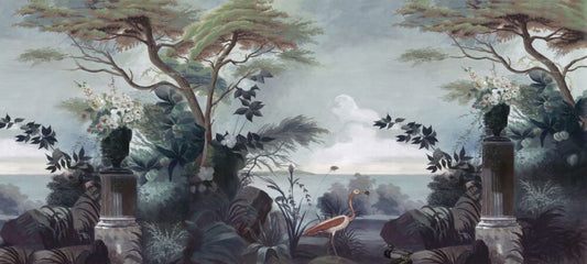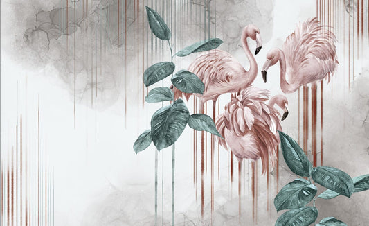 Flamingo ve Bitki Desenli 3D Duvar Kağıdı