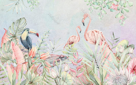 Flamingo ve Tropikal 3D Duvar Kağıdı
