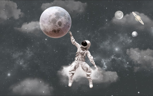 Ay ve Astronotlu 3D Duvar Kağıdı | Duvar Kağıdı Marketi