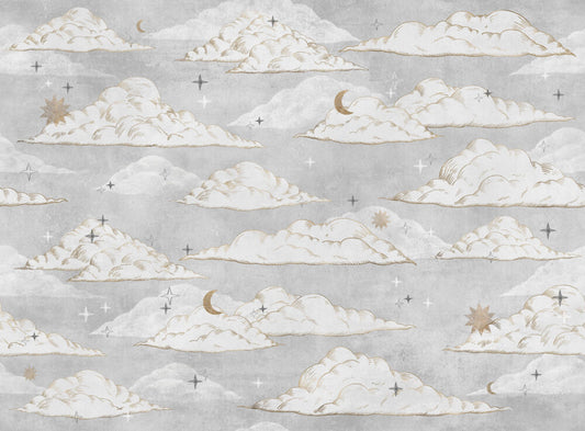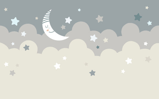 Yıldızlı Bulut ve Uyuyan Ay Desenli 3D Duvar Kağıdı | Duvar Kağıdı Marketi