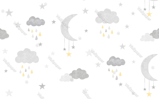 Bulut Ve Yıldız Desenli Duvar Kağıdı