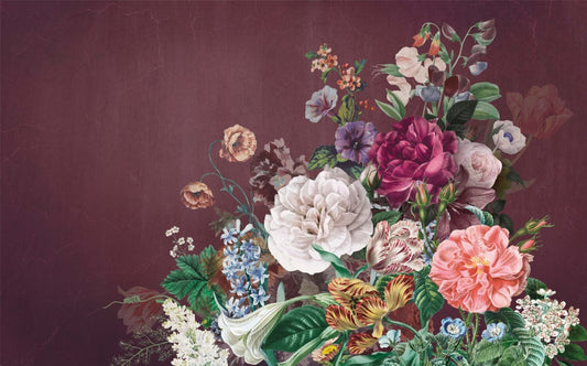 Büyük Gül Desenli Bordo Zeminli 3D Duvar Kağıdı