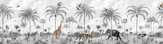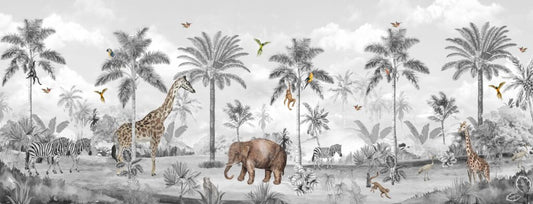 Siyah Beyaz Tropikal Renkli Hayvanlar 3D Duvar Kağıdı