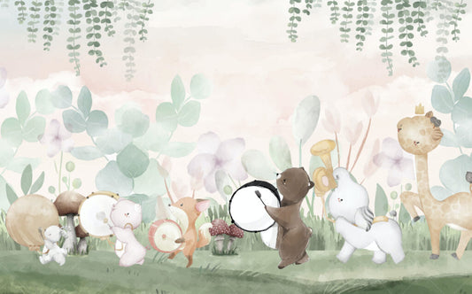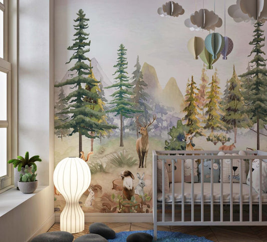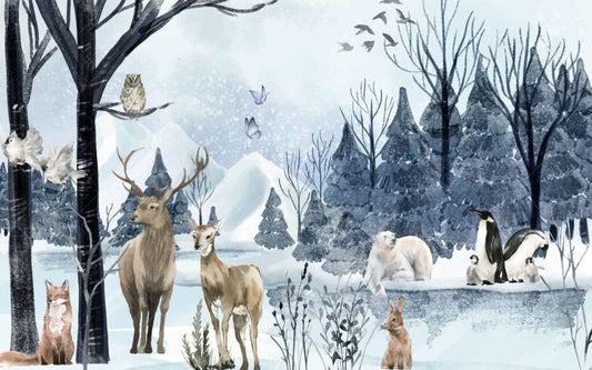 Ormandaki Hayvanlar Temalı 3D Duvar Kağıdı