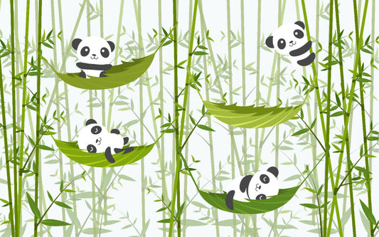 Yaprak Üzerindeki Pandalar Temalı 3D Duvar Kağıdı | Duvar Kağıdı Marketi