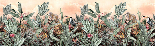 Maymunlu Tropikal Desenli 3D Duvar Kağıdı
