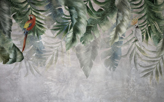 Yukarıdan Sarkan Tropikal Yapraklı Papağanlı Duvar Kağıdı