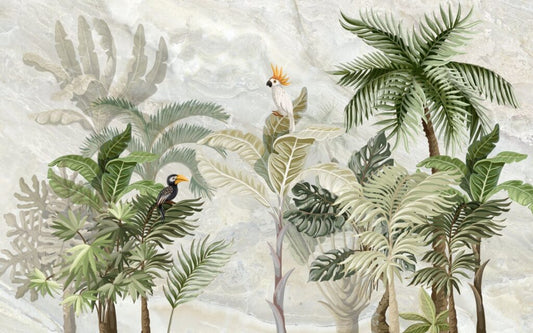 Turna Kuşlu Tropikal Duvar Kağıdı