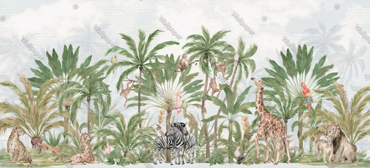 Tropikal Ağaçlar Arasındaki Safari Hayvanları Duvar Kağıdı