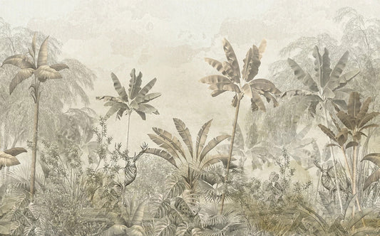 Tropikal Ormanda Hayvanlar Alemi Bej Zemin Duvar Kağıdı