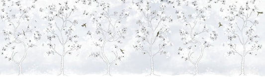Beyaz Çiçek Ağaçlı Duvar Kağıdı