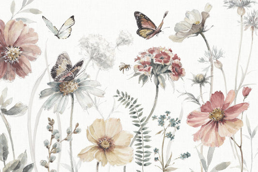 Papatya Çiçekli ve Kelebekli 3D Duvar Kağıdı