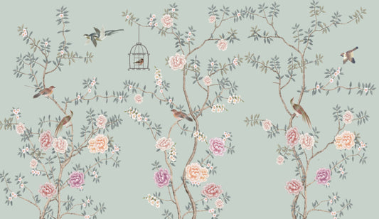 Kuşlar ve Soft Çicekler 3D Duvar Kağıdı