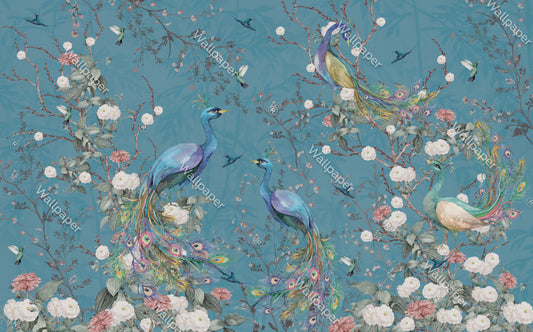 Çiçekli Tavus Kuşu Desenli 3D Duvar Kağıdı