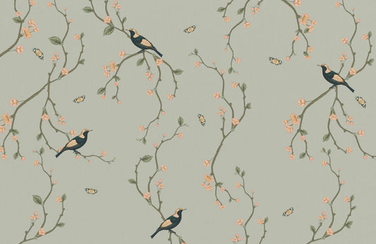 Daldaki Kuşlar Yeşil Tonlu 3D Duvar Kağıdı